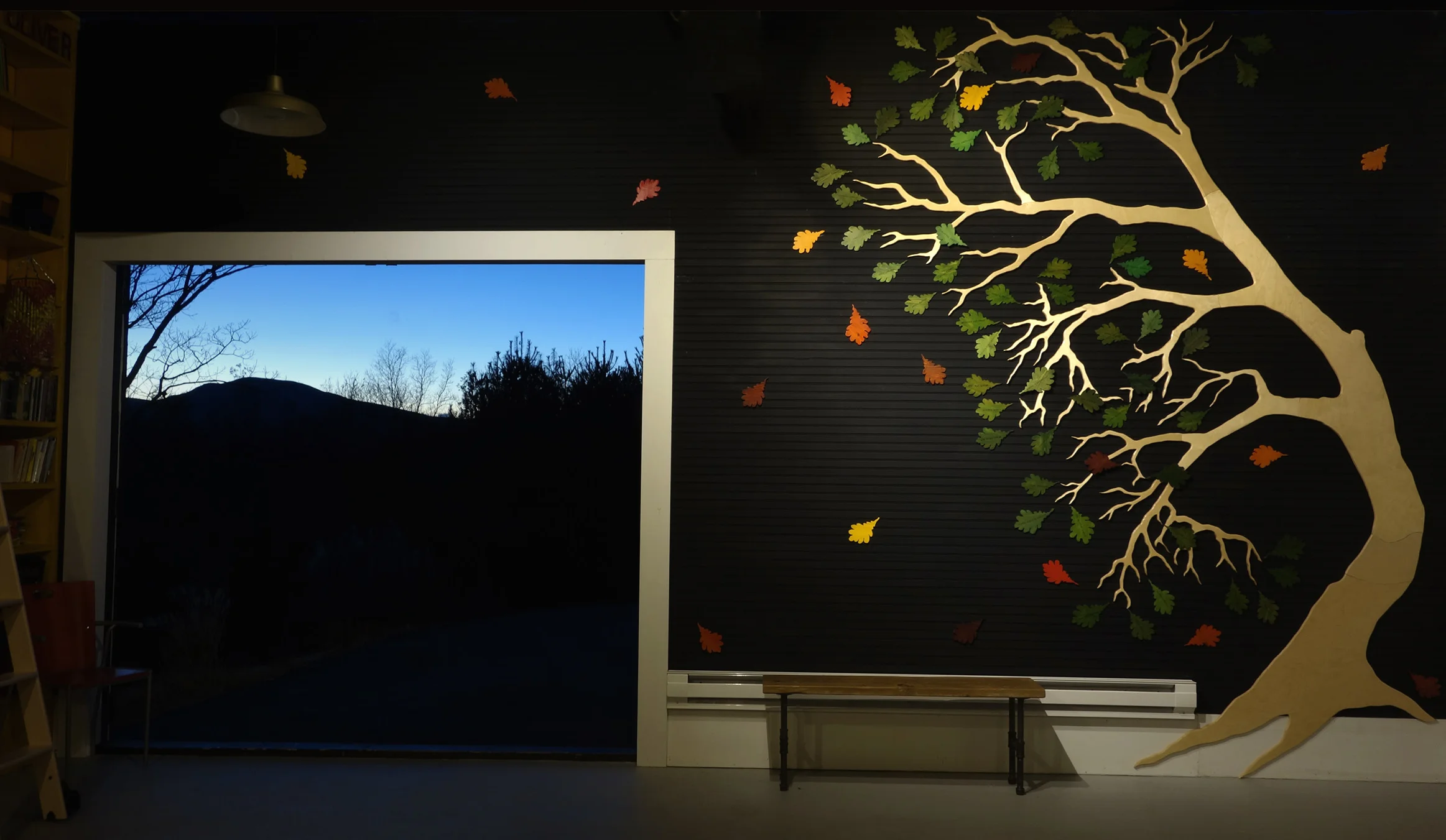 Though our tree is not a “live-oak,” nor is our barn located in Louisiana, Whitman’s poem echoes beautifully my conviction that the Poetry Barn would not exist without its friends. Thus, I am thrilled to honor them with an oak tree art installation. The work's designer and architect, AnneLouise Burns, exceeded my expectations in creating a sculpture of outsized, overjoyed beauty—its gorgeous green leaves inscribed with our friends' names testifying to the grace and fecundity of our community.